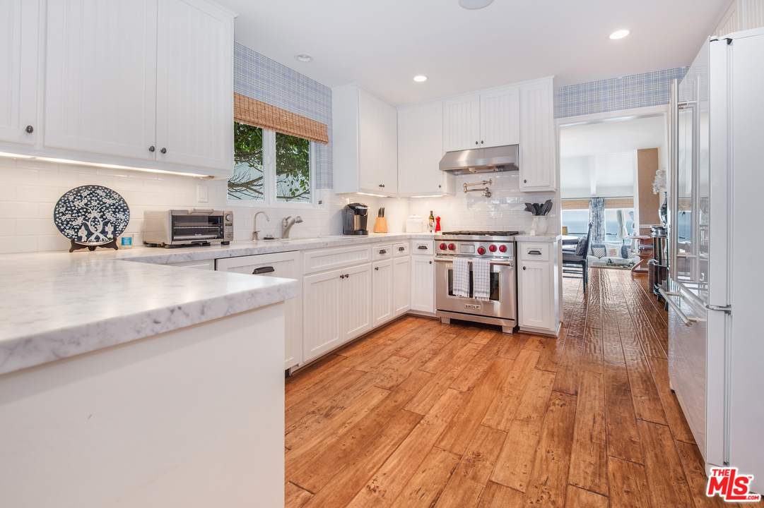 Beautiful beach bluff three-story Cape Cod-style home, with a large detached en-suite guesthouse, sits above Sea Level beach & offers breathtaking Catalina & sunset panoramic ocean views. This private/gated Broad Beach jewel w/courtyard, covered entry & wood floors throughout offers a main level ocean view living room w/fireplace, high wood beam ceilings & a wall of glass windows and sliders to an entertainers/viewing deck, a formal ocean view dining room & an ocean view chef's kitchen with marble counters and breakfast/lunch dining area. The top level includes a sun-filled, ocean view owner's suite w/high ceilings and a luxurious bath with a pedestal tub & triple head glass shower, plus a generous en-suite bedroom. The lower level has an ocean view great room, w/glass shower bath, that's perfect as a media/recreation room, and glass sliders to a 2nd expansive entertainers deck w/access from the main level deck, spa tub, and endless ocean views. There is a 2-car garage w/guest parking.